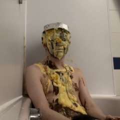 StagedStooge got a custard-filled balloon busted over his head by michiganpie1
