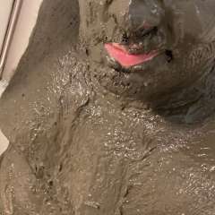 Kimmokay chilled in a hot tub full of clay with megapies